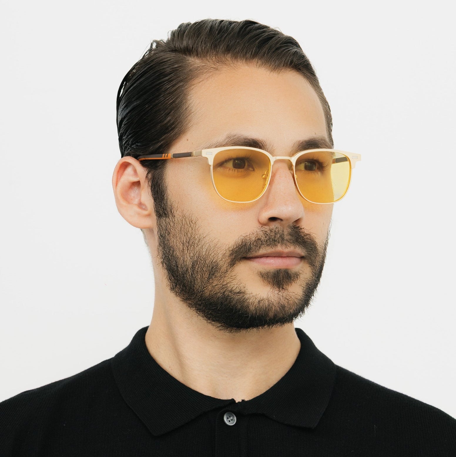 Griffin is the stylish answer to a multifaceted life. Its lightweight metal frame supports two identities: a yellow-filter clip to enhance your night vision and a polarized clip to block the sun. Clean design. Hidden ingenuity.